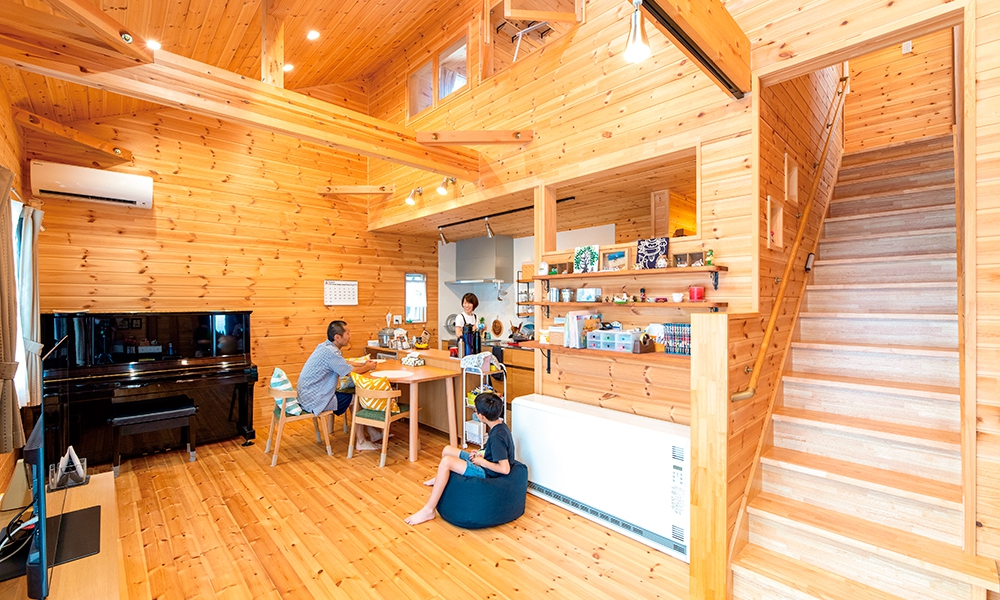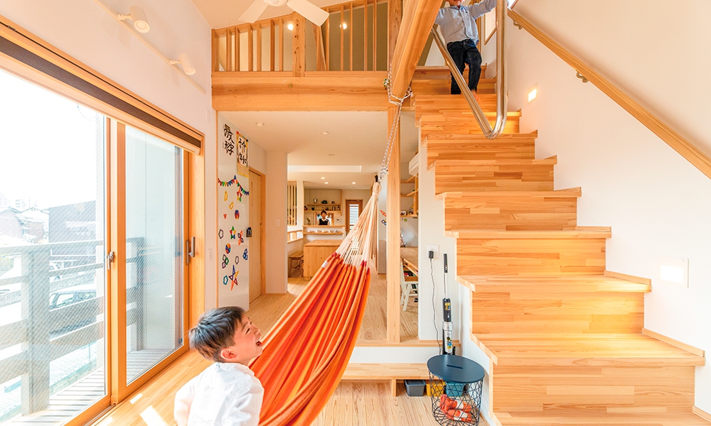 吹き抜けリビングの開放感と暮らしを楽にする家事動線 オー…