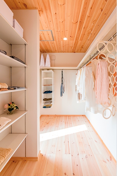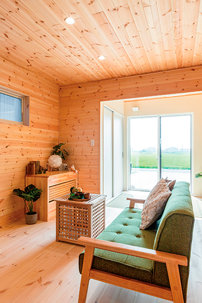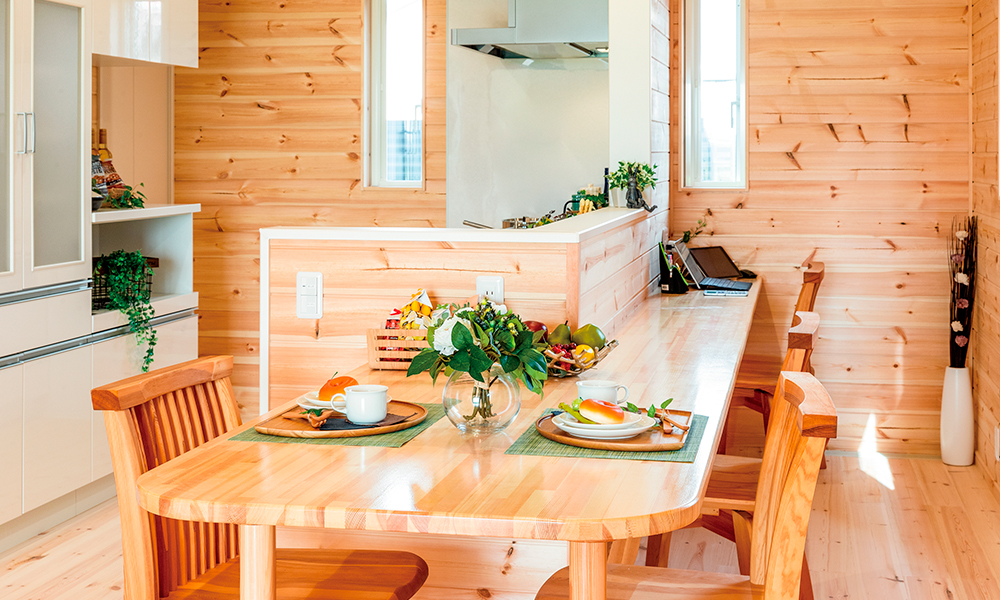 天然素材による内装仕上げも大きな魅力。本モデルハウスでは、すべてが無垢仕上げのLDKを筆頭に、