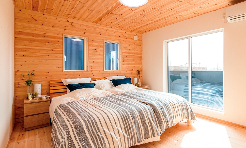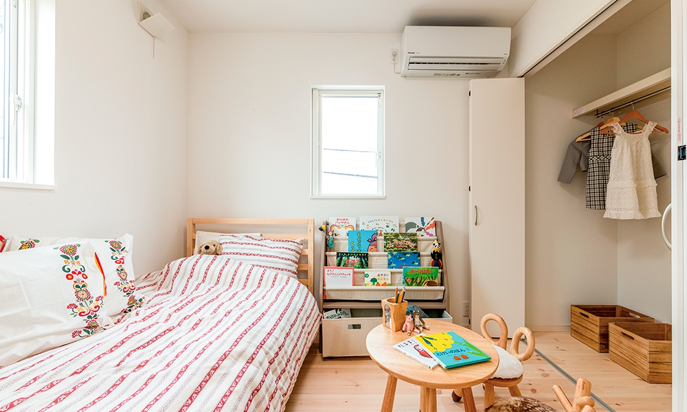 さらに子供部屋にはアフターメンテのしやすい珪藻土壁紙、無垢と塗壁を組み合わせて癒やしを演出した寝室と、空間ごとの役割に合わせた内装を提案しています。