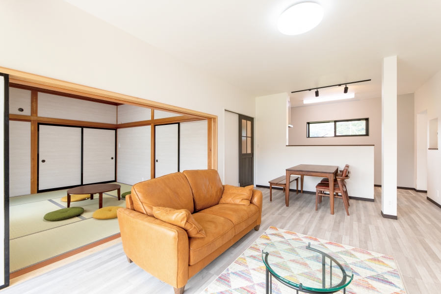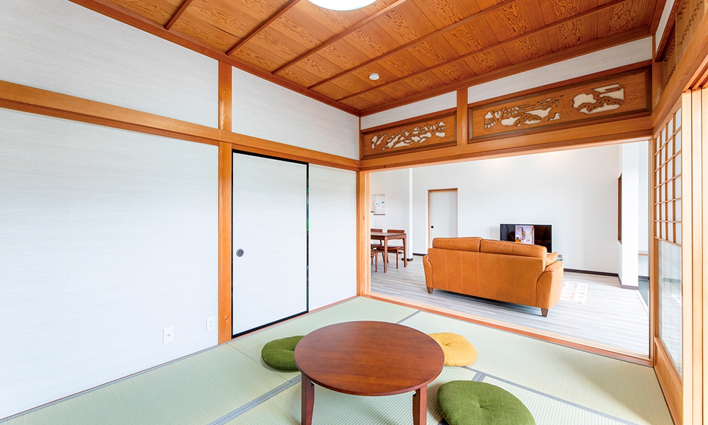 屋根瓦以外の外装を一新したその中身は、建具で細かく部屋分けされていたものから、現代的な間取りへと刷新。