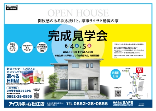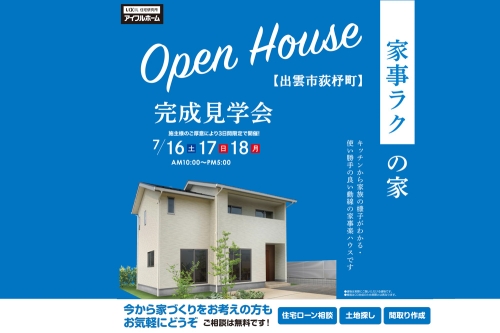『家事ラクの家-荻杼-|完成見学会』アイフルホーム出雲店
