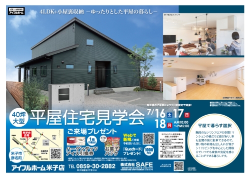 『40坪大型|平屋住宅見学会』アイフルホーム米子店