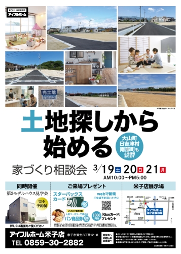 『土地探しから始める』家づくり相談会|アイフルホーム米子店