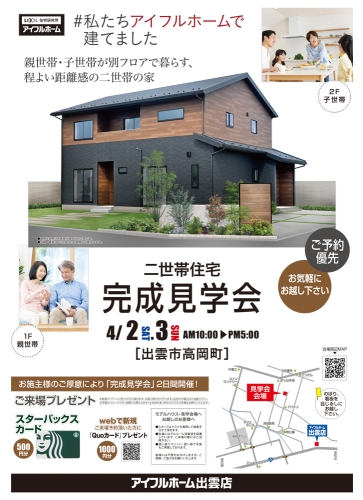 『二世帯住宅|完成見学会』アイフルホーム出雲店